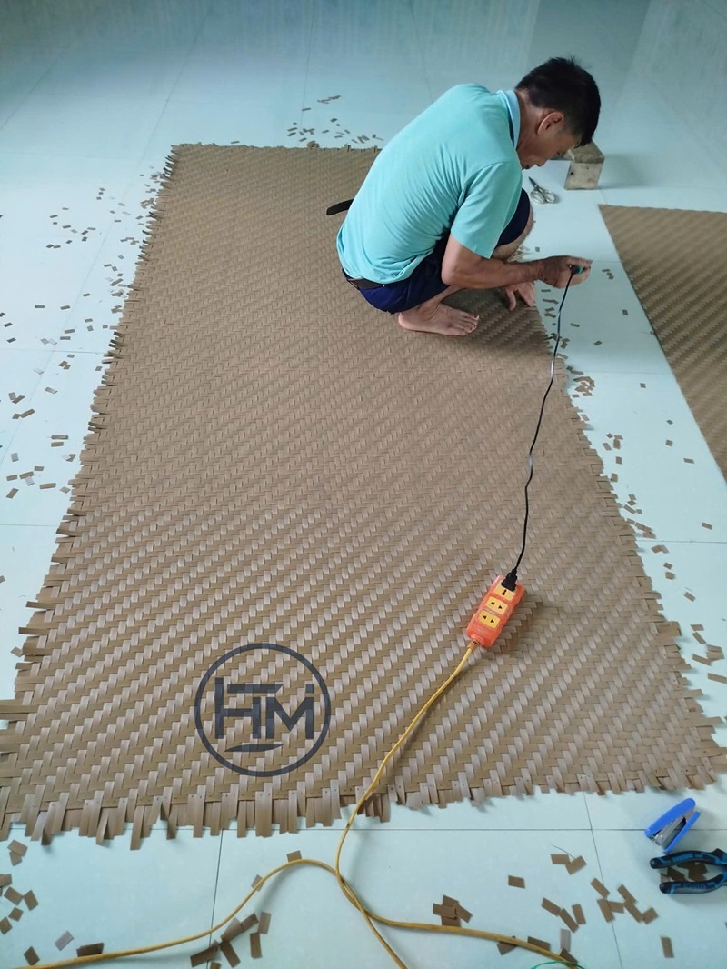 - Cắt và gắn tấm cót ép: Cắt theo kích thước, dùng keo