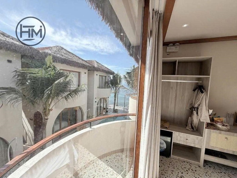 Việc sử dụng mái lá nhân tạo không chỉ giúp không gian mang đậm chất nhiệt đới, mà còn giữ được vẻ đẹp đồng bộ và dễ bảo trì trong suốt quá trình vận hành. Sự kết hợp giữa kiến trúc hiện đại và mái lá truyền thống tạo nên điểm nhấn riêng biệt, khác biệt hoàn toàn so với các resort khác trong khu vực.
