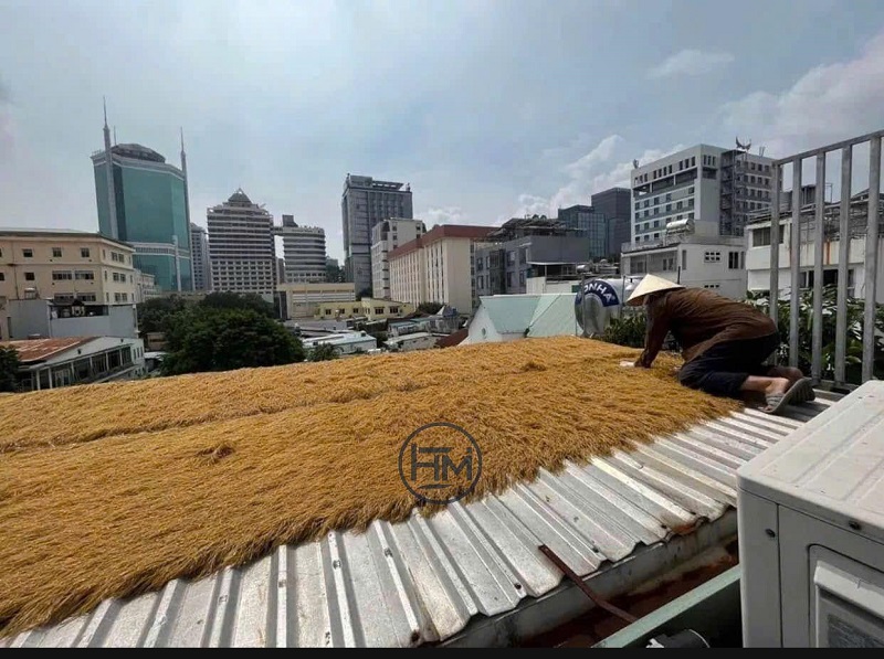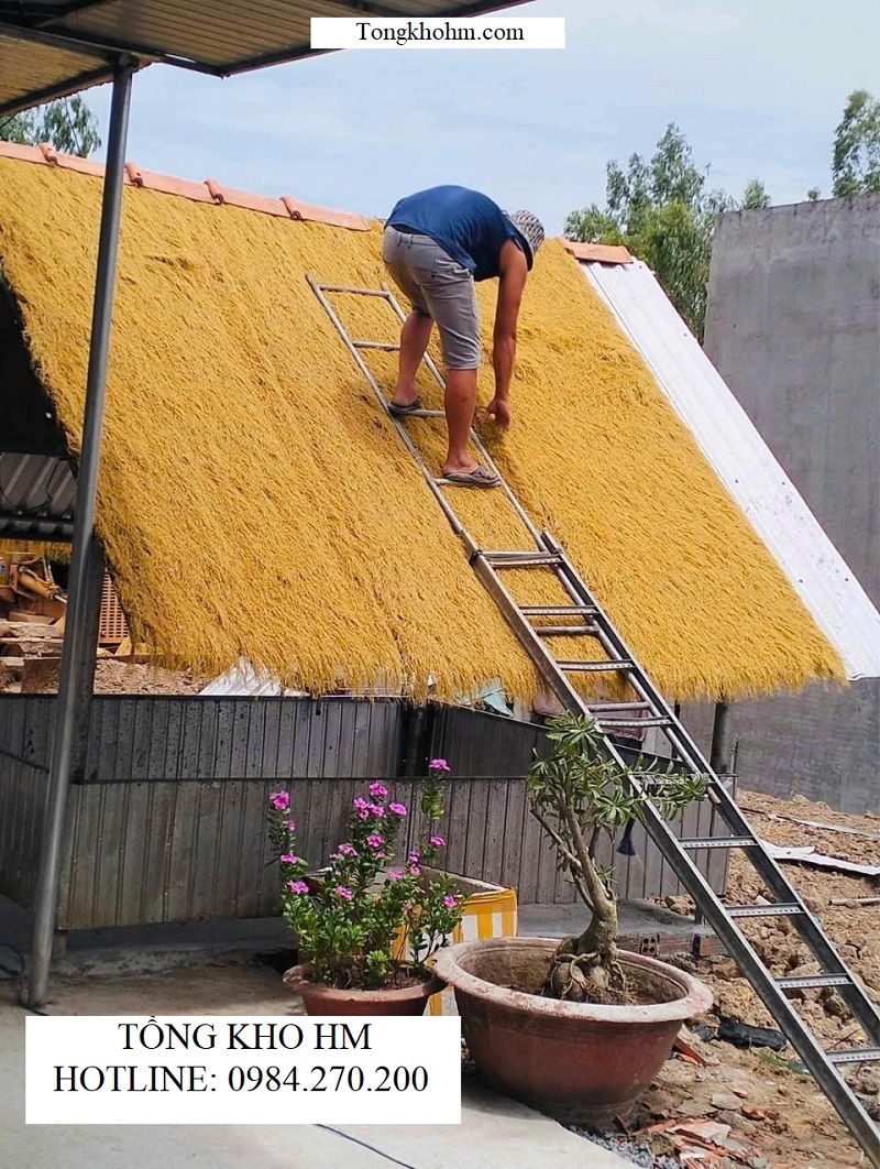 công rơm nhân tạo lợp mái nhà lớn, yêu cầu chống dột.