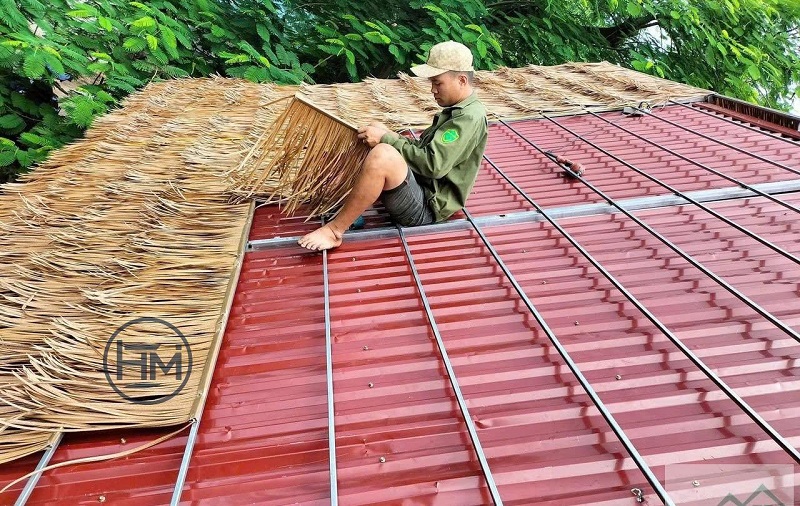 Tổng Kho Phân Phối Rơm Tranh Nhân Tạo Toàn Quốc Giá Gốc Là Đơn Vị Tổng Kho Phân Phối Rơm Tranh Nhân Tạo Toàn Quốc Giá Gốc Tốt 2023 Hỗ Trợ Thiết Kế Thi Công Mái Lá Nhà Tre Với Giá Tốt Nhất Vật Liệu Nhân Tạo HM Khẳng Định Đem Lại Các Giải Pháp Vật Liệu Nhân Tạo Tốt Nhất Tới Quý Khách Trên Toàn Quốc Mái lá nhân tạo là một sản phẩm được nhiều chủ đầu tư sử dụng làm mát cho mái tôn thi công nhà mái lá . Đây là một sản phẩm có độ bền cao, chịu được điều kiện thời tiết khắc nghiệt. Đặc biệt, vào những ngày thời tiết nắng nóng sẽ giúp giảm đáng kể lượng nhiệt mà mái tôn tỏa ra. giúp giảm sự hấp thụ nhiệt, qua đó giúp tiết kiệm điện cho ngôi nhà. Sự kết hợp giữa mái lá nhân tạo và mái tôn đã mang lại cho chủ đầu tư nhiều lợi ích. Một trong số đó là giúp công trình gần gũi và tự nhiên hơn. Từ đó khách hàng cũng có những phản hồi tích cực về kiến trúc và thẩm mỹ của công trình. Với thông điệp và trách nhiệm là tạo ra những nhà mái lá mái tranh nhà tre trúc chòi lá trên khắp mọi miền tổ quốc việt nam ( Đội ngũ kỹ thuật của nhà mái lá HM có mặt tại 64 Tỉnh Thành sẵn sàng hỗ trợ quý khách có nhu cầu : An Giang , Bà Rịa-Vũng Tàu , Bạc Liêu , Bắc Kạn , Bắc Giang , Bắc Ninh , Bến Tre , Bình Dương , Bình Định , Bình Phước , Bình Thuận , Cà Mau , Cao Bằng , Cần Thơ (TP) , Đà Nẵng (TP) , Đắk Lắk , Đắk Nông , Điện Biên , Đồng Nai , Đồng Tháp , Gia Lai , Hà Giang , Hà Nam , Hà Nội (TP) , Hà Tây , Hà Tĩnh , Hải Dương , Hải Phòng (TP) , Hòa Bình , Hồ Chí Minh (TP) , Hậu Giang , Hưng Yên , Khánh Hòa , Kiên Giang , Kon Tum , Lai Châu , Lào Cai , Lạng Sơn , Lâm Đồng , Long An , Nam Định , Nghệ An , Ninh Bình , Ninh Thuận , Phú Thọ , Phú Yên , Quảng Bình , Quảng Nam , Quảng Ngãi , Quảng Ninh , Quảng Trị , Sóc Trăng , Sơn La , Tây Ninh , Thái Bình , Thái Nguyên , Thanh Hóa , Thừa Thiên - Huế , Tiền Giang , Trà Vinh , Tuyên Quang , Vĩnh Long , Vĩnh Phúc , Yên Bái ) Không chỉ siêu bền màu mà mái lá nhân tạo còn có rất nhiều màu sắc khác nhau, đây là điểm nhấn ấn tượng của mọi công trình. Đặc biệt các dự án nghỉ dưỡng homestay giới trẻ rất thích check in, chụp ảnh sống ảo. Mái lá nhân tạo không ẩm mốc, không mối mọt côn trùng Nếu như sau trận mưa lớn hoặc mùa ẩm thấp mái lá tự nhiên có mùi hôi rất khó chịu, nấm mốc gây ảnh hưởng đến sức khỏe thì nhà mái lá khắc phục hoàn toàn. Giá mái lá nhân tạo bao nhiêu ? Giá mái lá nhân tạo đắt không? đây là vấn đề được nhiều khách hàng quan tâm bởi với sự ưu thế vượt trội của mình liệu mái lá nhân tạo rất đắt phải không? Hoàn toàn ngược lại, chi phí của mái lá nhân tạo không hề đắt phù hợp với mọi công trình lớn nhỏ. Giá thành từ 300 ngàn đến hơn 600 ngàn 1m2 tùy phương án lợp và mật độ lợp. Giá mái lá nhân tạo lợp trên mái phụ trang trí Nếu đã có mái sẵn chỉ cần lợp mái lá nhân tạo với mục đích trang trí chống nóng, trang trí không cần lợp quá dày chỉ cần lợp 1 lớp 6- 8 tấm. Mái phụ ở đây có thể là mái tôn, mái ngói, mái xi măng, mái pro… mái gì cũng được chỉ cần chống dột là được. Sau đó lợp lên 1 lớp lưới hàn mạ kẽm hoặc B40, hoặc hệ thống cầu phong lito sau đó cố định mái lá nhân tạo bằng dây đồng. Mật độ tối thiểu là 6 tấm/ 1 m2 khoảng cách giữa 2 lớp là 30 cm. Nếu muốn dày dặn và đẹp hơn thì nên lợp 8- 10 tấm / 1 m2 Khoảng cách các tấm là 25 cm ( 8 tấm ), 20 cm( 10 tấm) Như vậy giá trên 1 m2 dao động từ 300 – 600 ngàn/ 1 m2 nếu lợp có mái phụ ở dưới. Để tiết kiệm khách hàng thường dùng tôn sóng hoặc tôn xốp làm mái phụ bên dưới, giá chỉ vài chục ngàn/ 1m2 Những câu hỏi thường gặp về giá mái lá nhân tạo Độ bền của mái lá nhân tạo được bao lâu giá có đắt không? Mái lá nhân tạo có độ bền trên 20 năm, giá đầu tư ban đầu từ 400 – 600 ngàn/ 1m2 mà bền trên 20 năm không cần bảo trì bảo dưỡng thì không hề đắt. Ngược lại lại còn tiết kiệm hơn rất nhiều so với vật liệu tự nhiên, cứ 2- 3 năm lại thay thế bảo trì, bảo dưỡng một lần. Mái lá nhân tạo có làm hỏng tôn không ? Mái lá nhân tạo róc nước nhanh, không thấm nước, giảm tiếng ồn và nóng rất tốt cho mái tôn, không hề làm hỏng tôn thậm chí còn bền hơn, bảo vệ tôn tốt hơn. Mái lá nhân tạo khác gì so với mái lá tự nhiên ? Mai lá nhân tạo bền hơn, chống cháy, chống mối mọt , chống côn trùng khắc phục mọi nhược điểm của mái lá tự nhiên. Ngoài ra mái lá nhân tạo còn nhiều màu sắc khác nhau, tạo nét trang trí độc đáo hơn, đẹp hơn. Mái lá nhân tạo đốt có cháy không ? Mái lá nhân tạo có loại chống cháy đặc biệt và chống cháy tiêu chuẩn. Loại chống cháy đặc biệt sau khi đốt trực tiếp trên ngọn lửa sợi rơm chỉ xun lại rồi tự tắt, không bén lửa, không lan lửa. Loại chống cháy tiêu chuẩn bỏ que diêm hay tàn thuốc lá vào không cháy tuy nhiên đốt trực tiếp